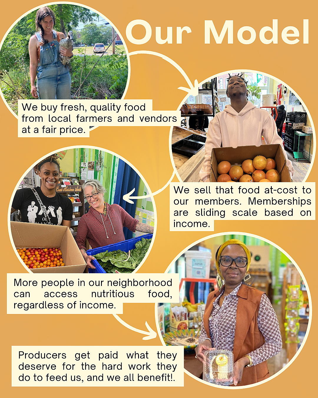 We buy from more than 100 local and emerging farmers and 80+ businesses, and then sell everything at a 30% discount to our members. Memberships are sliding scale based upon household income.