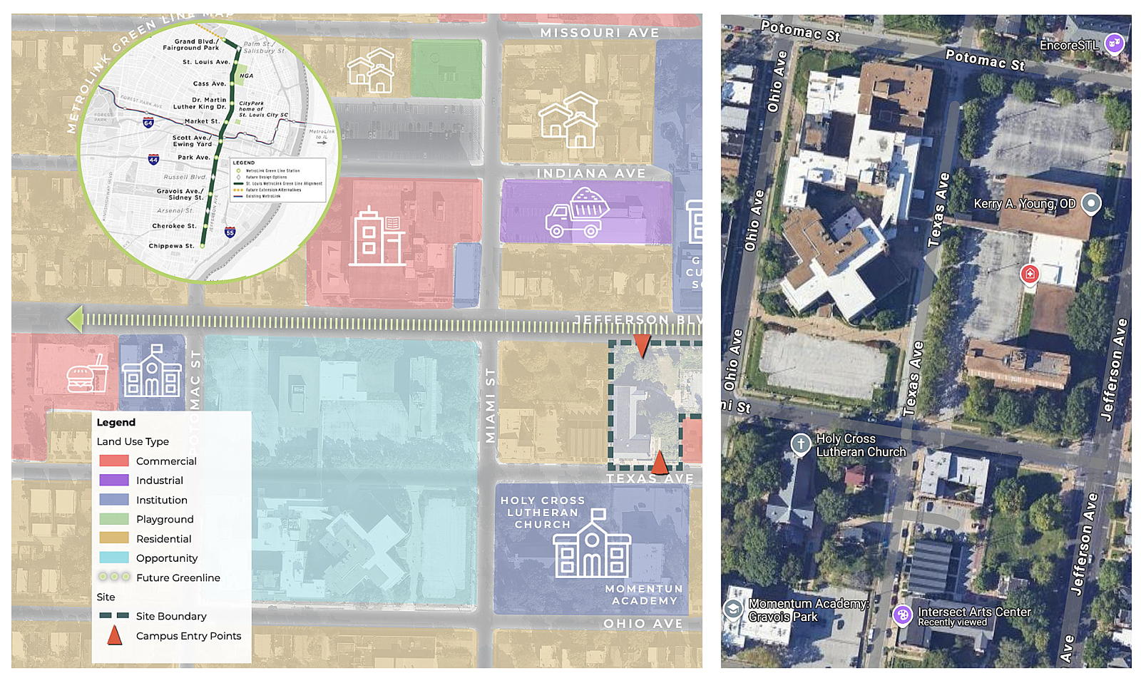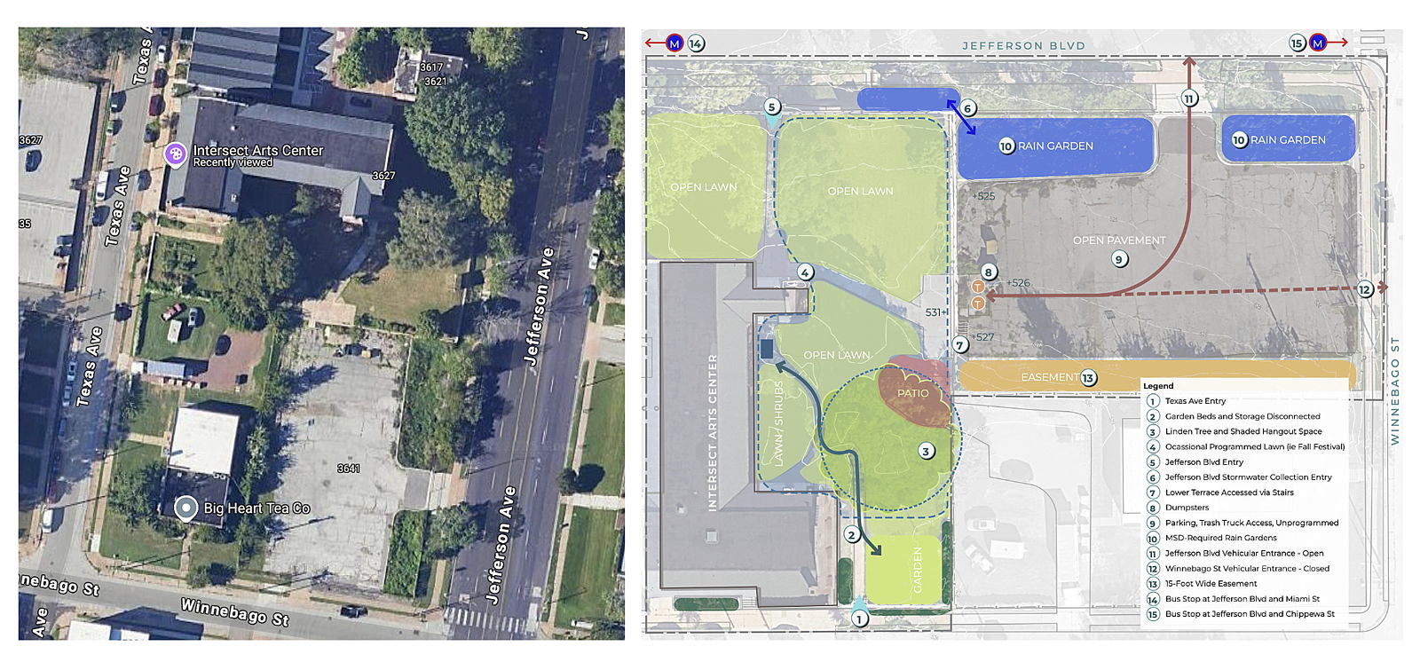 Ultimately we hope to improve the safety and walkability infrastructure, creating an arts corridor that connects Intersect with the Cherokee Street arts district. In doing so, we aim to collaborate with the local government and Cherokee CID to enhance the surrounding blocks. This includes increasing pedestrian-scale lighting, supporting bike infrastructure, and integrating green spaces—proven to reduce crime risk by lowering aggression and stress. Additionally, there is a demonstrated need for cooling areas in communities that lack accessible parks.