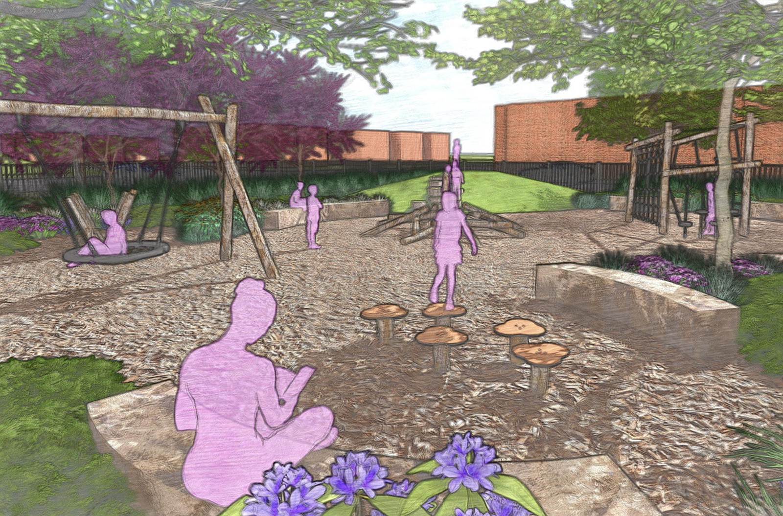 Currently our grounds are home to community garden boxes, outdoor education classes, native garden beds, and stormwater rain gardens. The hope in our pursuit for continued restoration of the grounds that we steward is to weave respite, play, and beauty into the physical gathering spaces of our community. We plan to transform our underutilized parking lot into a public splash-pad, natural playground, and sculpture park that will be a haven for families and artists alike who lack walkable play and green space.
